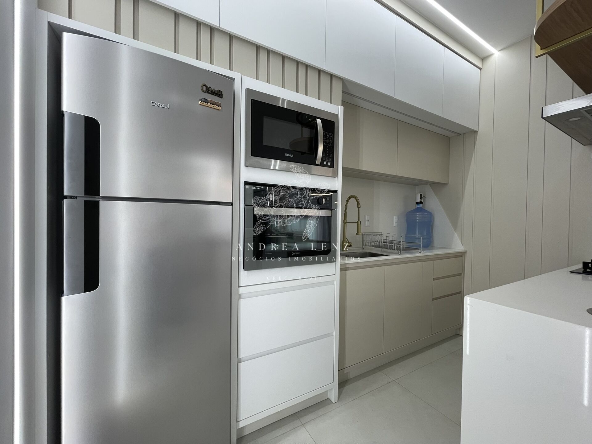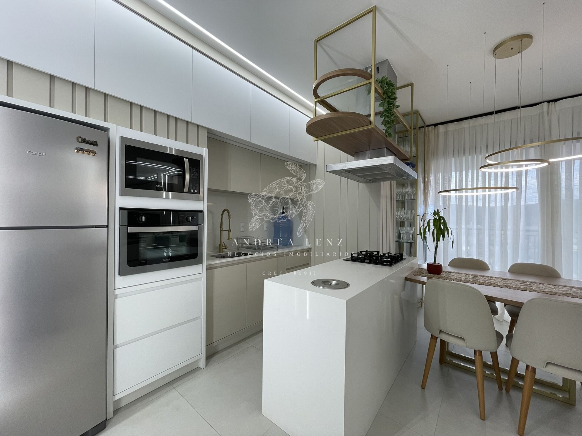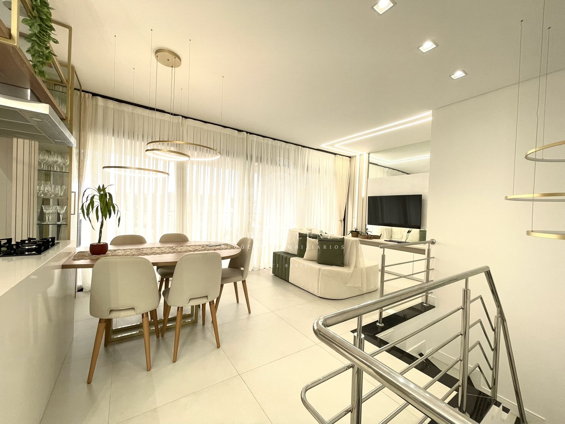 • Cozinha, sala de estar e jantar integradas, proporcionando amplitude e modernidade;
