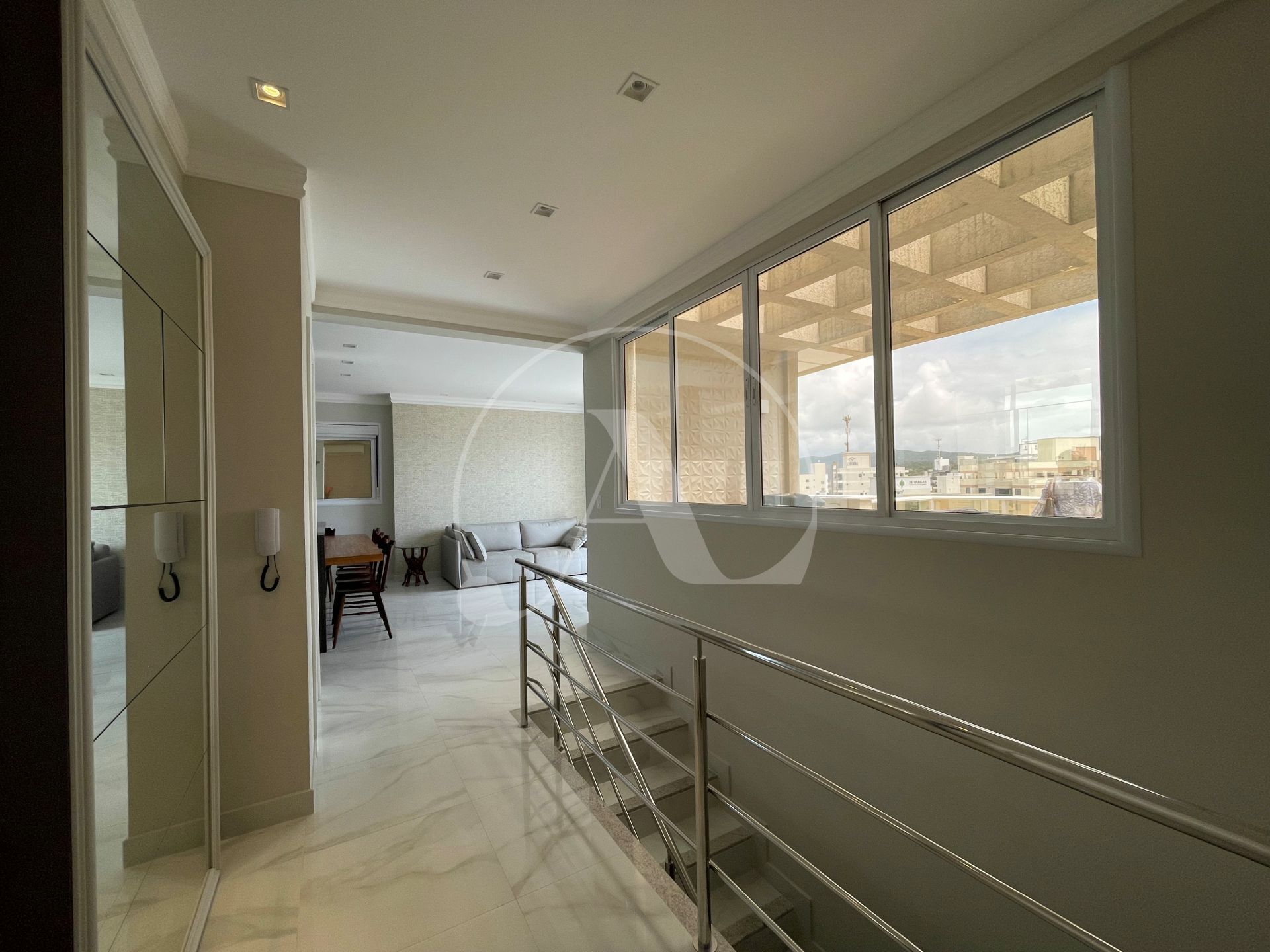 A cobertura duplex possui espaços generosos e móveis confortáveis, é o lugar perfeito para contemplar o mar, receber amigos ou simplesmente relaxar.