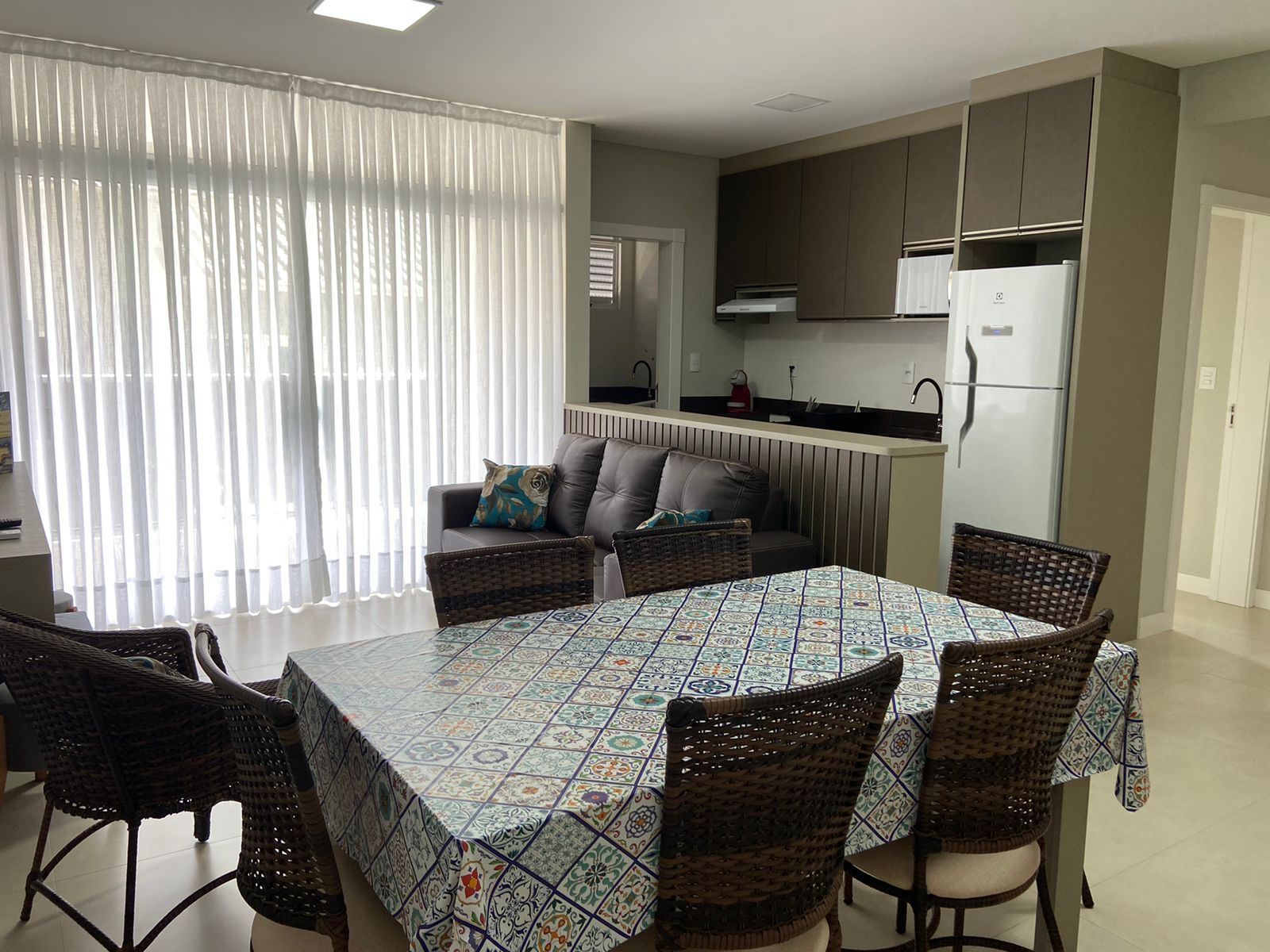 O apartamento é aconchegante, possui sala estar e jantar integradas, climatizada com ar split para seu total conforto.